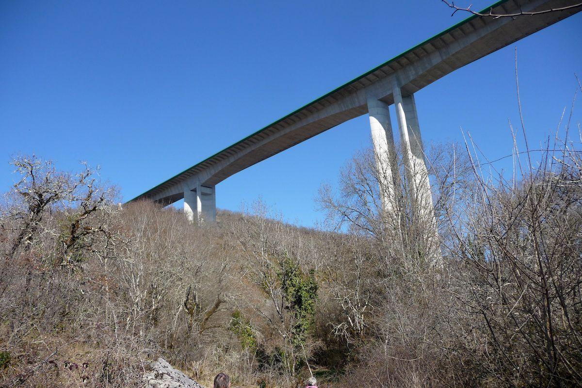 Descente au ruisseau "La Rauze" puis cheminement le long de celle-ci, côté rive droite, en passant sous le viaduc autoroutier (pour rappel : hauteur de 101 m, long de 556 m, ouvert à la circulation en 2001 et reliant les communes de Nadillac et de Bellefont La Rauze), pour rejoindre Maquefave. Après ce parcours très agréable, voici la 1ère montée. Les 130 m de dénivelé ont été franchis sans trop de difficultés et la vue panoramique depuis le plateau nous a bien récompensés.