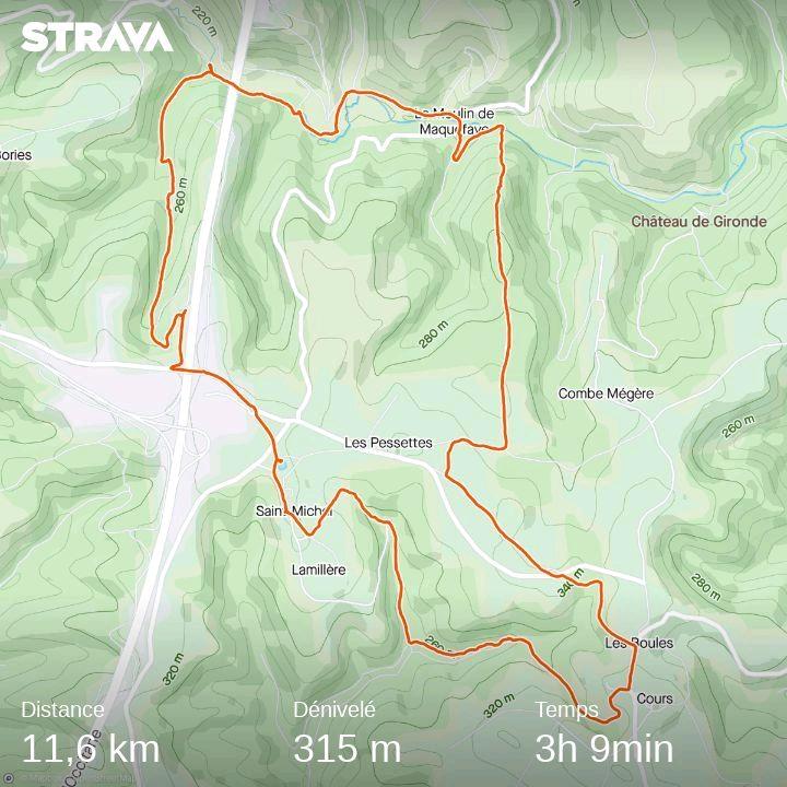 Un détour par Cours, descente vers le ruisseau de Nouaillac et remontée tranquille pour le village de St-Michel de Cours (sauf pour 2 farfelus qui ont faussé compagnie pour braver une nouvelle pente difficile !...)