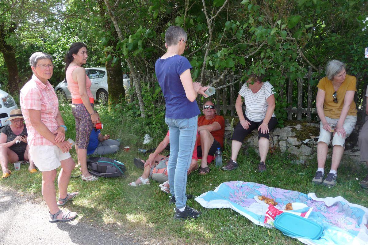 Une marche active, à 4 kms/h, vitesse inhabituelle depuis ... un certain temps, nous a amenés au secteur "La Fount", lieu de retrouvailles pour les habitantes de Nadillac qui, jusqu'aux années 1950, venaient terminer leur lessive et faire sécher le linge sur les prés. Malheureusement pour nous le fauchage n'était pas effectué et c'est sur le chemin que nous avons pique-niqué.